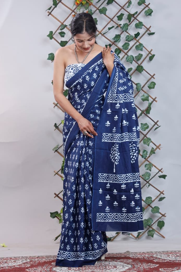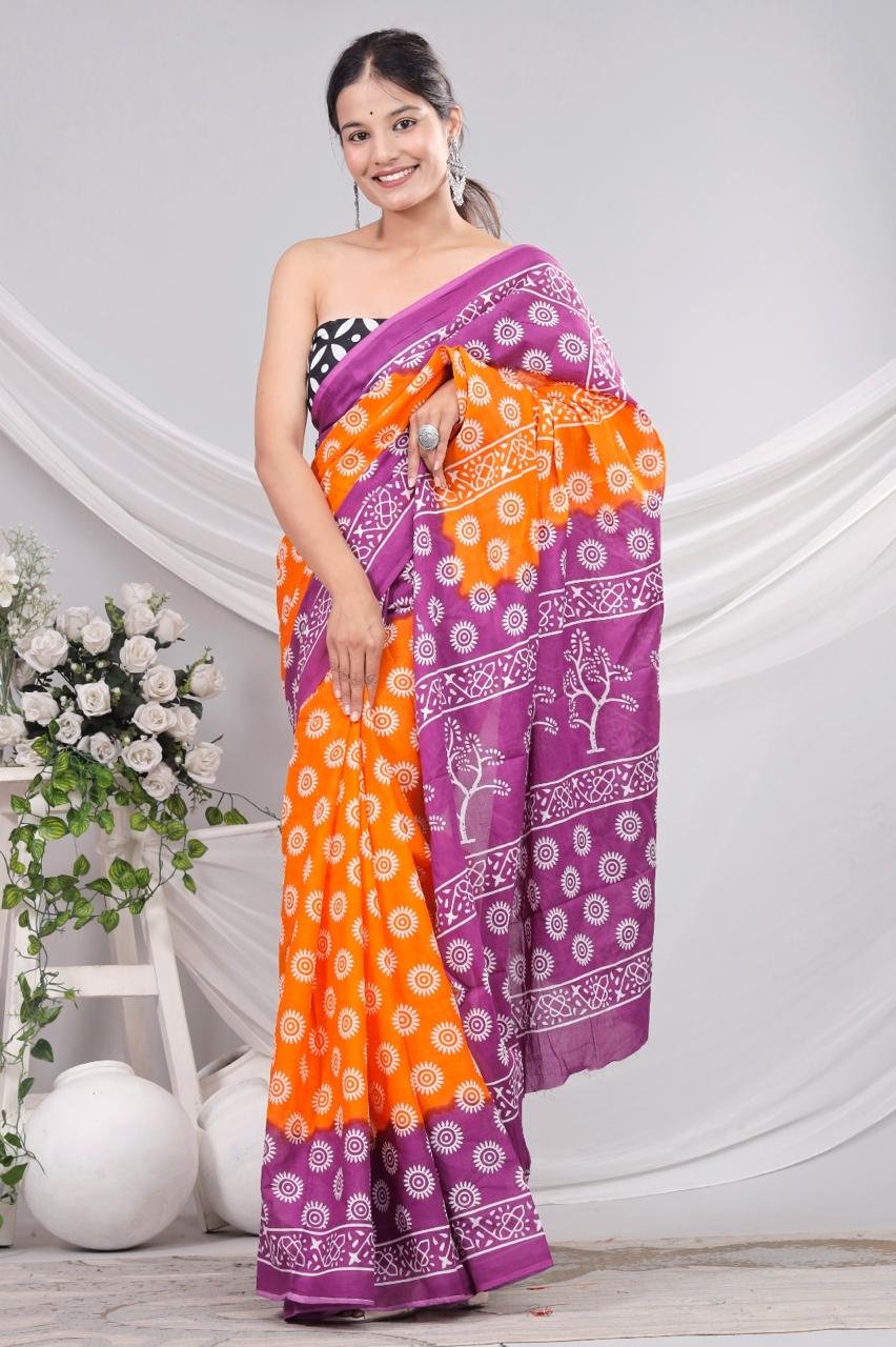 Block Print Cotton Mulmul Sarees